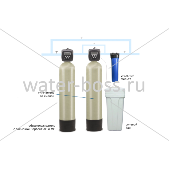 Цена указана за минимальную комплектацию. Включает в себя: 1. Комплексная колонна аэрации\обезжелезивания 2. Колонна умягчения 3. Угольный фильтр тонкой очистки .